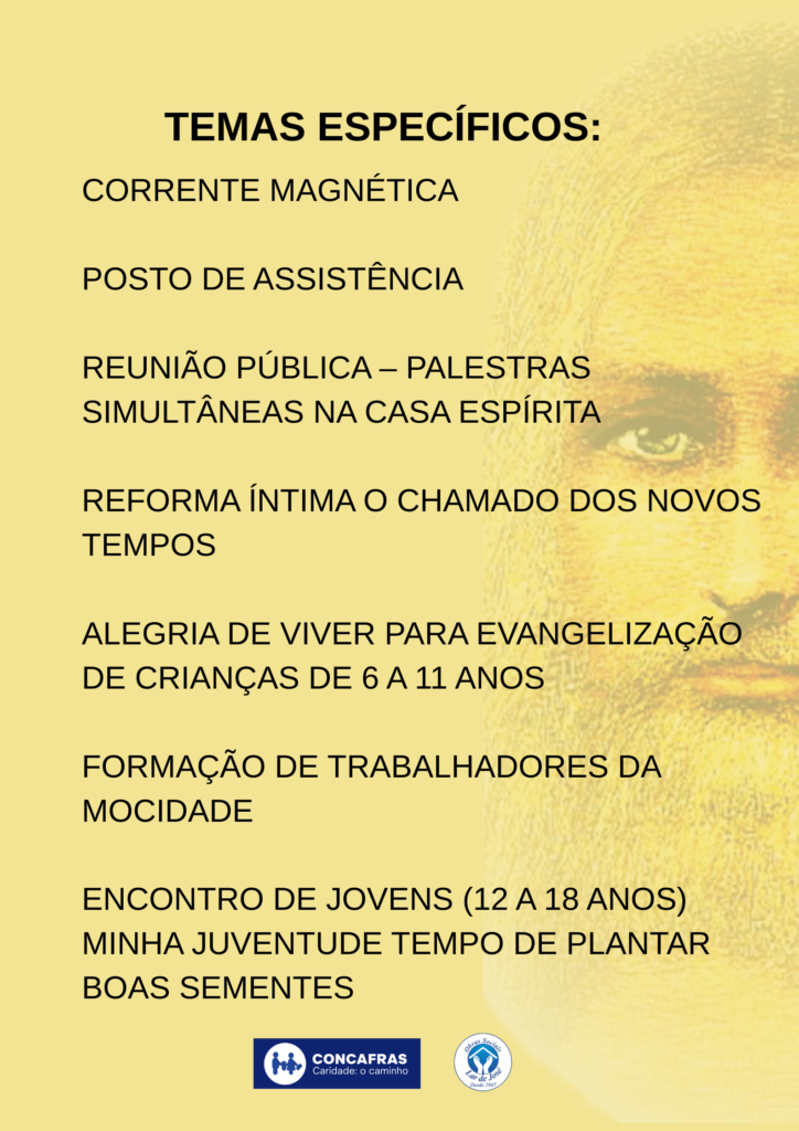 Uma oportunidade única de aprendizado e troca de experiências, que inspira e fortalece os trabalhadores espíritas em suas tarefas de amor e caridade. E mais: Encontro de jovens e Encontro com atividades especiais para crianças.